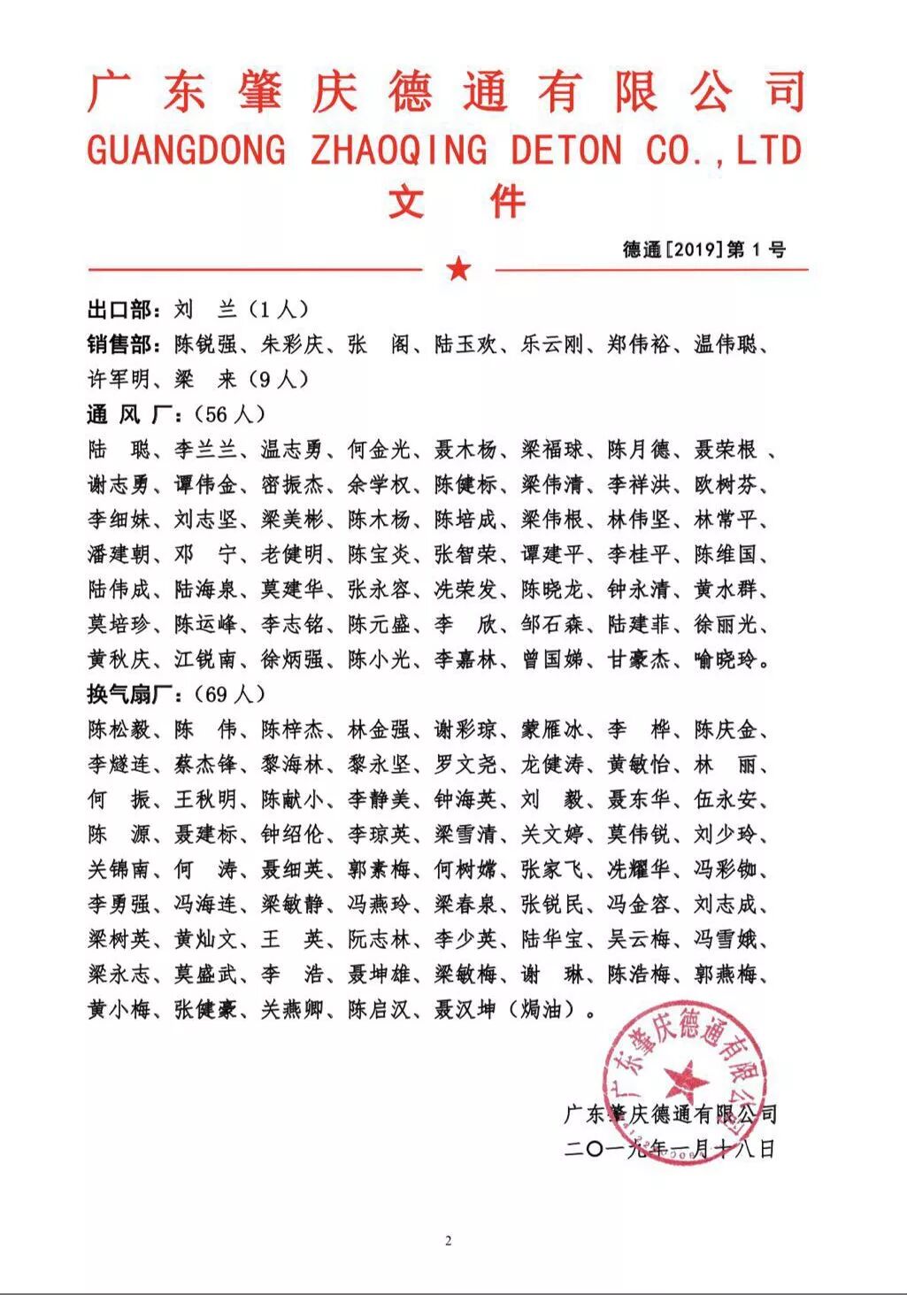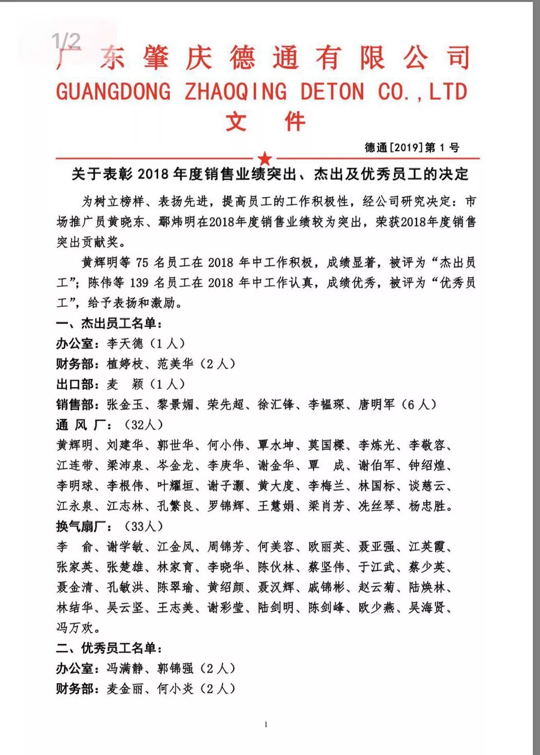随后,为鼓励表扬、提高员工的积极性,德通公司技术副总王华宣读了2018年度销售业绩突出、杰出及优秀员工的名单。希望在接下来的工作中能保持热情,努力工作。